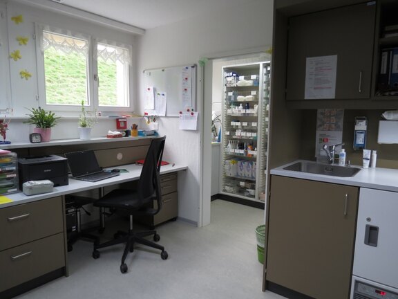 Die Gemeinschaftspraxis Wiese in Nesslau ist vom Alterszentrum aus zu Fuss in fünf Minuten erreichbar. Alle drei dort praktizierenden Ärzte machen regelmässig Visiten in unserem Haus. Die meisten unserer Bewohnerinnen und Bewohner haben einen dieser Ärzte als Hausarzt.